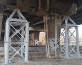 - Dodatkowa podpora odciążyła newralgiczny filar i umożliwia ruch kolejowy oraz samochodowy pod wiaduktem.