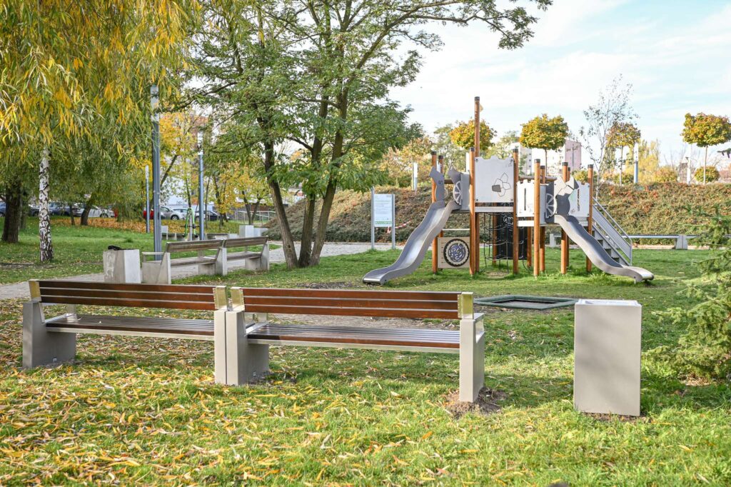 Istniejący plac zabaw uzupełniono elementami małej architektury. Zdewastowaną część tumbusa przywrócono do stanu zieleni poprzez zasadzenie krzewów — irgi szwedzkiej. Całe zadanie kosztowało 23 tys. zł. Wykonawcą obu inwestycji była firma KLON z Częstochowy. Fot. Łukasz Kolewiński / UM.