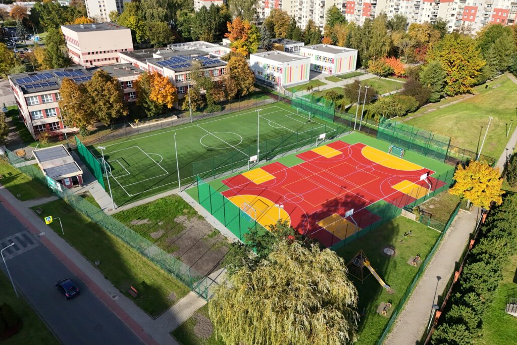„Natomiast modernizacja wielofunkcyjnego boiska przy SP13 była kompleksowa, bo poza nową nawierzchnią boisko zyskało wcześniej nową podbudowę.”