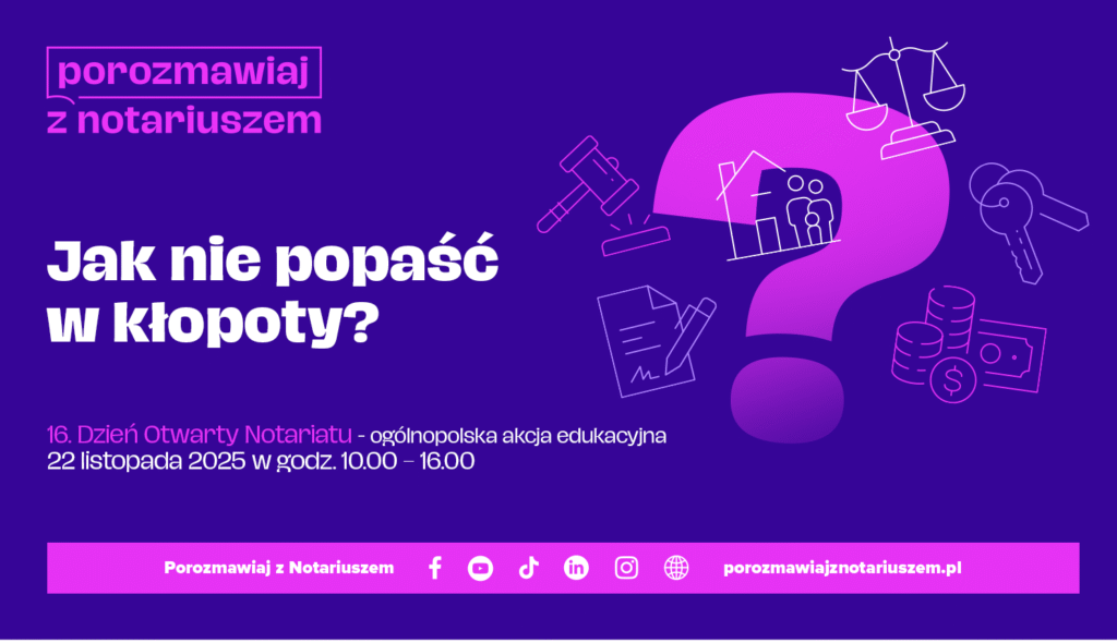Podczas akcji notariusze udzielą bezpłatnych informacji prawnych i pomogą rozwiązać najczęstsze życiowe dylematy. W centrum uwagi znajdą się m.in.: