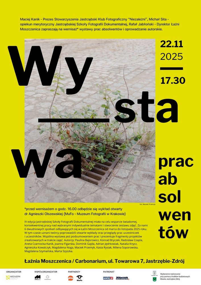 22 listopada w Instytucie Dziedzictwa i Dialogu – Łaźnia Moszczenica w Jastrzębiu-Zdroju odbędzie się finał czwartej edycji Jastrzębskiej Szkoły Fotografii Dokumentalnej. W programie jest wykład dr Agnieszki Olszewskiej oraz otwarcie wystawy prezentującej efekty ośmiomiesięcznej pracy absolwentek i absolwentów.
