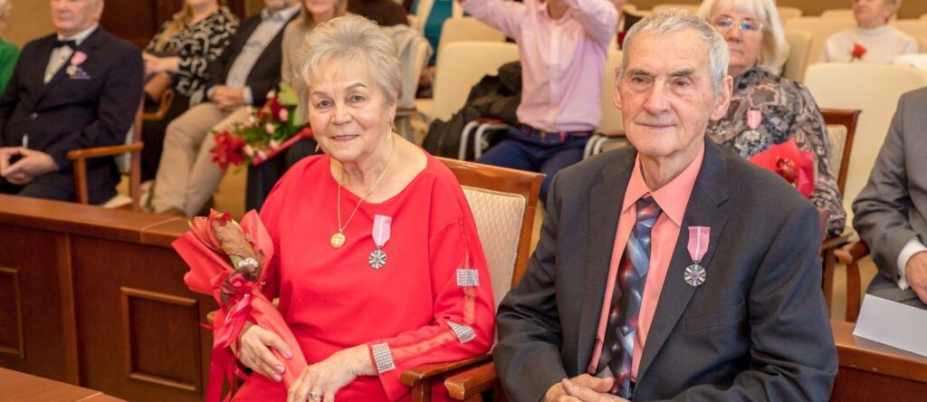 Prezydent Miasta Paweł Silbert odznaczył jubilatów Medalami Za Długoletnie Pożycie Małżeńskie, które są nadawane przez Prezydenta Rzeczypospolitej Polskiej. Medale te zostały wręczone na wniosek Kierownika Urzędu Stanu Cywilnego. Medale otrzymali jubilaci obecni na uroczystości.