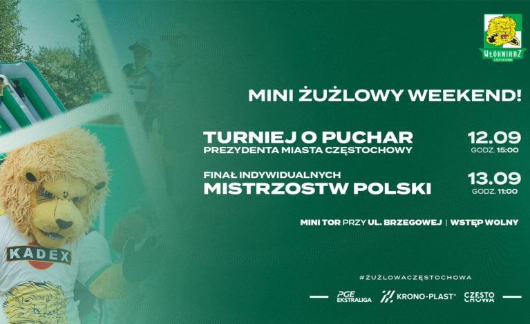 Na minitorze przy ul. Brzegowej czekają nas dwa dni pełne emocji, które oficjalnie zakończą sezon miniżużlowy w Częstochowie. W programie są Turniej o Puchar Prezydenta Miasta Częstochowy oraz drugi finał Indywidualnych Mistrzostw Polski w klasie 85–140cc połączony z Młodzieżowymi Indywidualnymi Mistrzostwami Śląska.