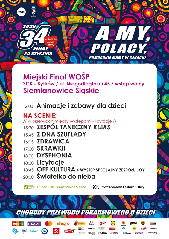 - Główne wydarzenie w SCK-Bytków z animacjami, koncertami i licytacjami oraz dodatkowo koncert w SCK-Zameczek