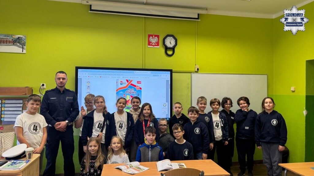 Uczniowie Szkoły Podstawowej nr 4 w Siemianowicach Śląskich wzięli udział w prelekcji poświęconej bezpiecznemu poruszaniu się po drogach. Spotkanie edukacyjne przeprowadził podkom. Michał Jędrszczyk z Wydziału Ruchu Drogowego Komendy Miejskiej Policji w Siemianowicach Śląskich.