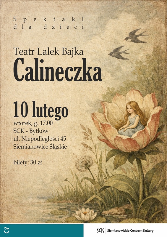 - Spektakl „Calineczka” w wykonaniu Teatru Lalek Bajka odbędzie się 10 lutego o 17:00 w SCK Bytków