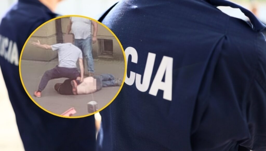 Na miejscu czynności prowadzą mundurowi. Policja potwierdziła, że zatrzymano podejrzanego, który zadawał ciosy. Funkcjonariusze zabezpieczają teren i wyjaśniają przebieg zdarzenia.