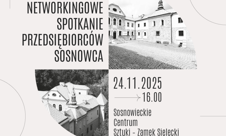 24 listopada 2025 r. w godz. 16.00–18.30 w Sosnowieckim Centrum Sztuki – Zamek Sielecki odbędzie się spotkanie networkingowe przeznaczone dla przedsiębiorców z Sosnowca. Organizatorami są Regionalna Izba Gospodarcza w Katowicach – Sosnowiecka Delegatura oraz Sosnowieckie Centrum Sztuki – Zamek Sielecki; udział jest bezpłatny, ale liczba miejsc jest ograniczona.