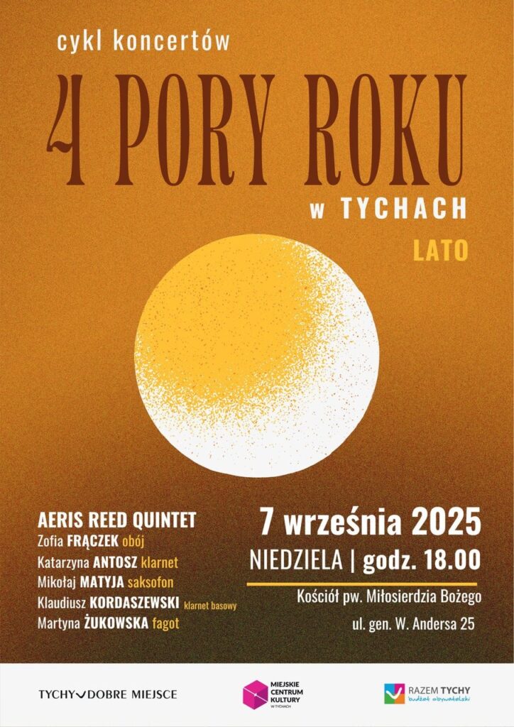 W niedzielę, 7 września o godz. 18.00 w kościele pw. Miłosierdzia Bożego przy ul. gen. W. Andersa 25 w Tychach odbędzie się koncert w ramach cyklu Cztery pory roku w Tychach. Wstęp na wydarzenie jest bezpłatny, a publiczność zaproszona jest na spotkanie z młodymi artystami Akademii Muzycznej.