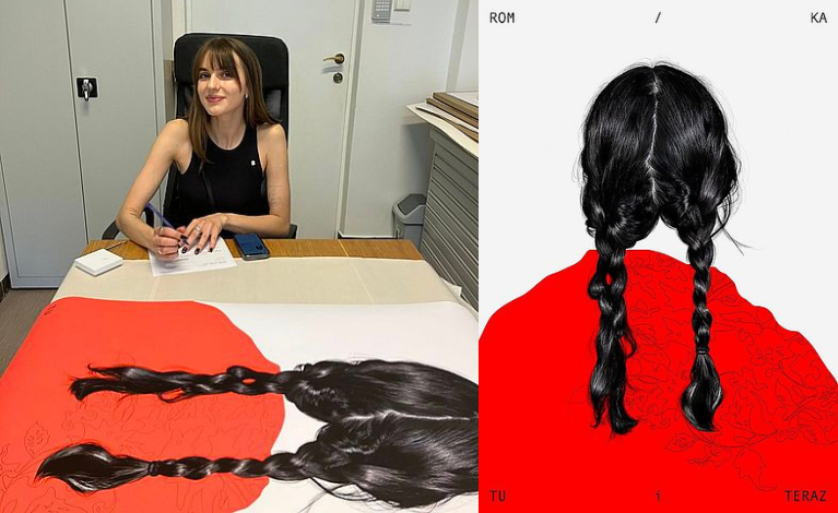 „Minimalistyczny obraz o silnej symbolice. Warkocze, czerwona koszula i napis „Rom/ka” tworzą natychmiastowy efekt i prowokują do głębokiej refleksji społecznej. Prosta forma staje się niezwykle złożona.”