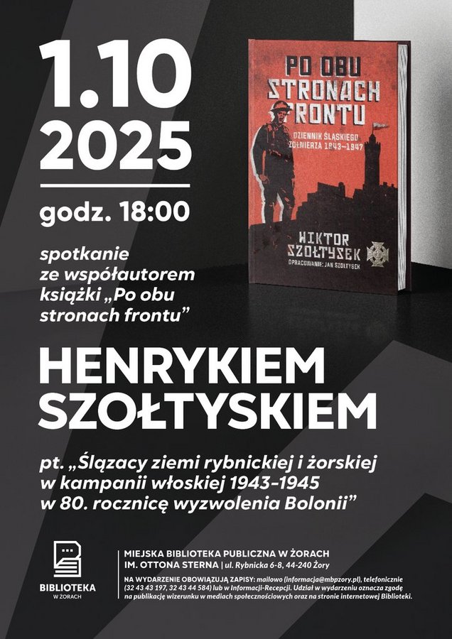 W Bibliotece w Żorach odbędzie się spotkanie z historykiem Henrykiem Szołtyskiem poświęcone udziałowi Ślązaków w kampanii włoskiej oraz 80. rocznicy wyzwolenia Bolonii. Gość przedstawi kulisy powstania rejestru żołnierzy z regionu, którzy walczyli w ramach 2 Korpusu Polskiego generała Władysława Andersa.