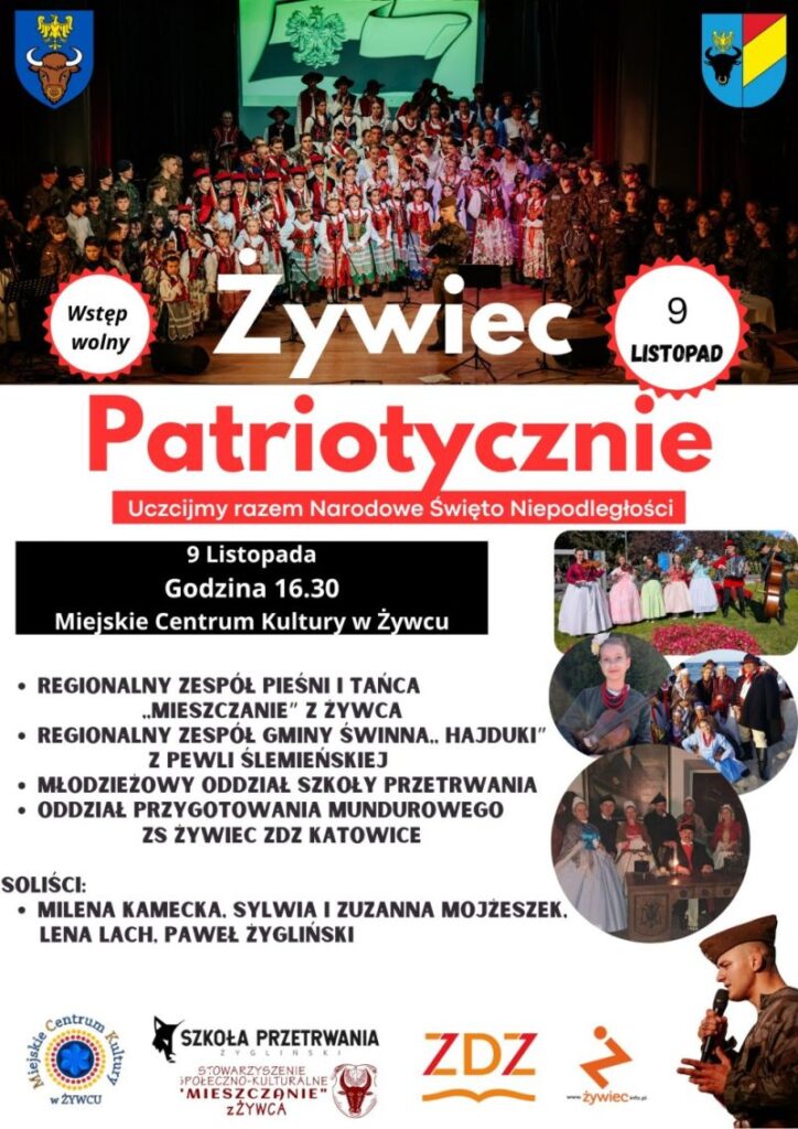 W najbliższą niedzielę, 9 listopada, w Miejskim Centrum Kultury w Żywcu odbędzie się koncert „Żywiec Patriotycznie”, przygotowany jako muzyczne wprowadzenie do obchodów Narodowego Święta Niepodległości. Wystąpią lokalni artyści i zespoły, a udział w wydarzeniu jest bezpłatny.