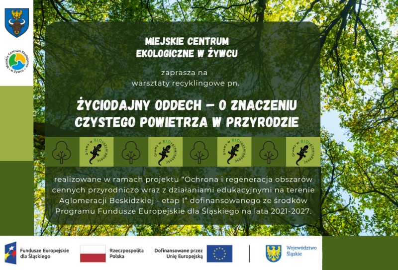 Miejskie Centrum Ekologiczne w Żywcu zaprasza szkoły i przedszkola na cykl warsztatów „Życiodajny oddech – o znaczeniu czystego powietrza w przyrodzie”. Zajęcia przybliżą przyczyny zanieczyszczeń powietrza, rolę drzew w walce ze smogiem oraz zakończą się kreatywnym warsztatem z materiałów recyklingowych.